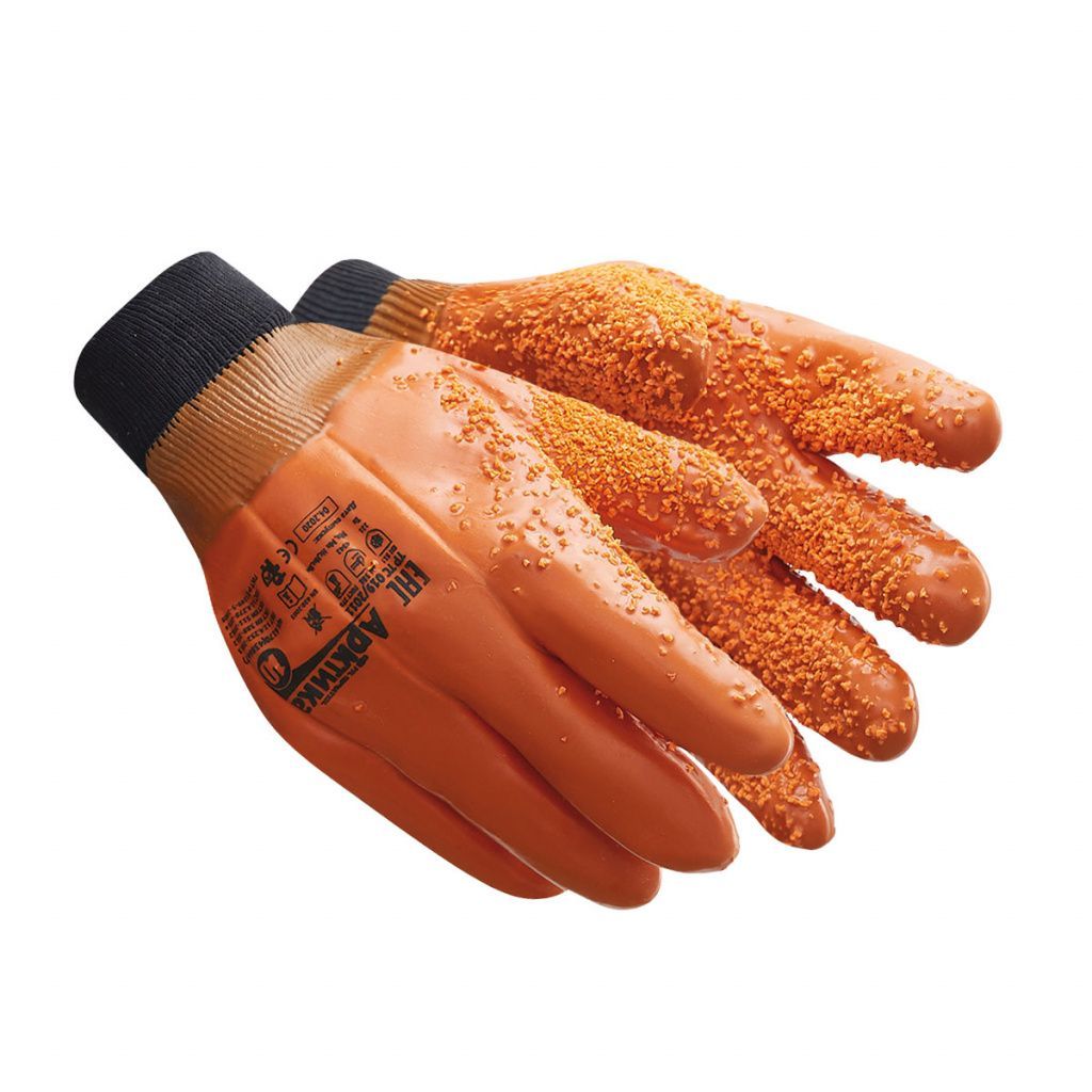 Перчатки с покрытием на основе ПВХ для защиты от механических воздействий, химических факторов, пониженных температур. Основа перчаток – хлопчатобумажная, на поролоновой подкладке, благодаря которой перчатки обладают высокими теплоизоляционными свойствами при работе в условиях пониженных температур. Благодаря полному ПВХ покрытию перчатки водонепроницаемы, герметичны, обеспечивают защиту от масел, нефти и нефтепродуктов, механических воздействий (истирание, порез, прокол). Текстурированная поверхность на внутренней стороне ладони выполнена при помощи специальной технологии нанесения ПВХ крошки, обеспечивает отличный захват и отсутствие скольжения. Перчатки рекомендованы для эксплуатации во II, III, IV и особом климатических поясах.